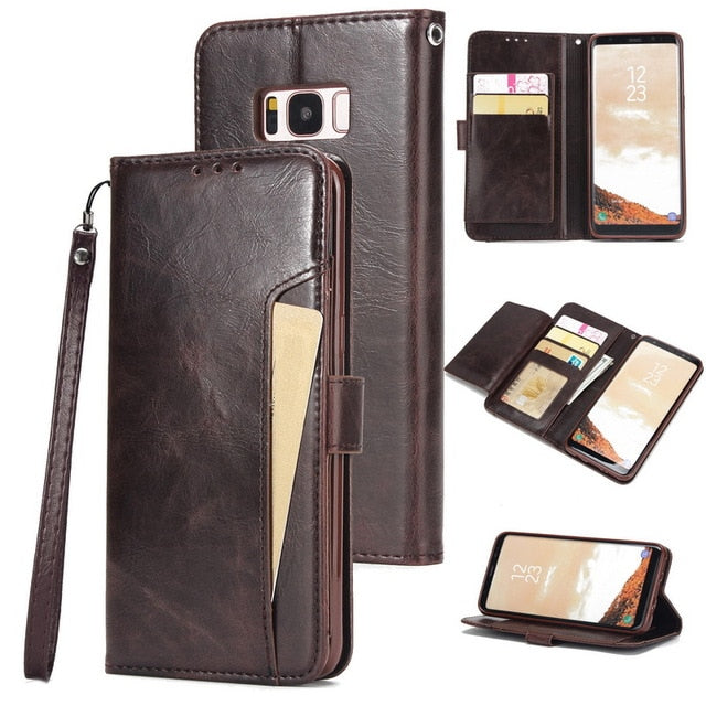 Crazy Horse Flip Leather Wallet Case For Samsung
