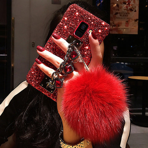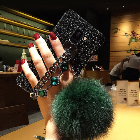 Features: Glitter Luxury Diamond Gem Bracelet Chain Tassel Fox Fur Ball Cover