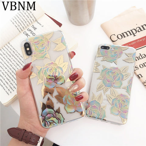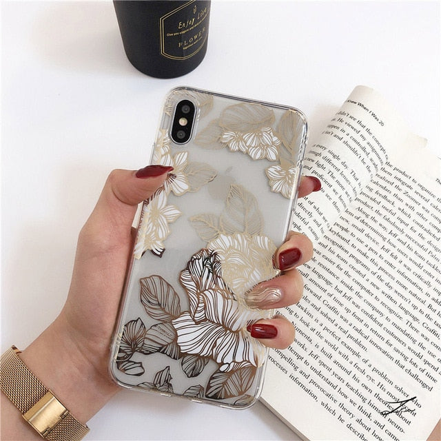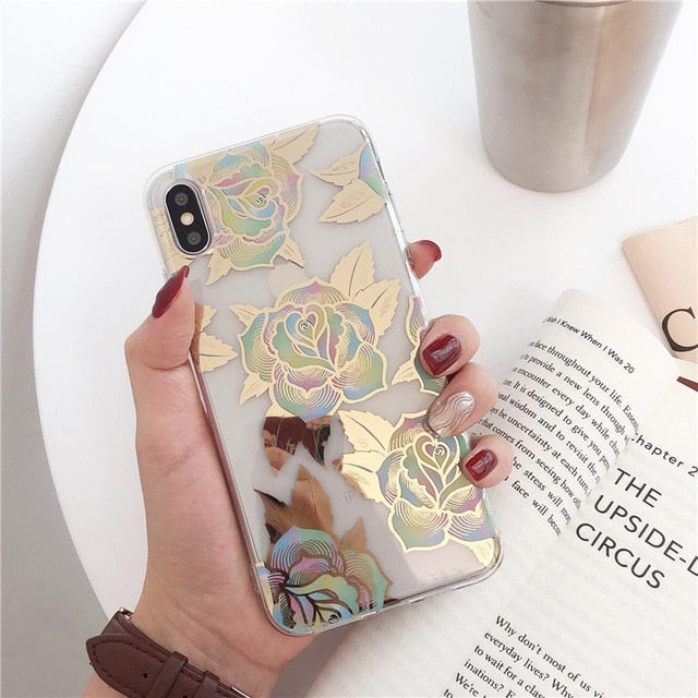 Features: Gold Bronzing Rose Flower Clear Case for iPhone
